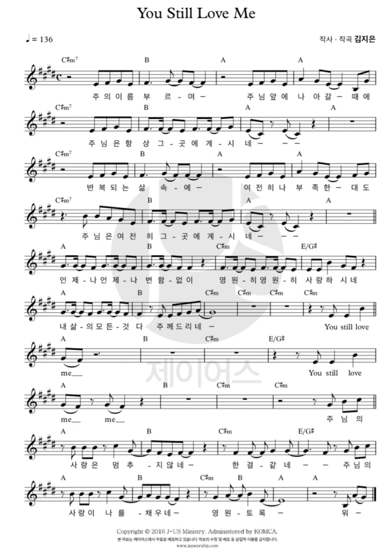 You Still Love Me 악보 – A코드 찬양